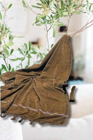 The entire edge is finished with a thick, handsome tasseled fringe in a darker, coordinating tone, lending a traditional and masculine finish.