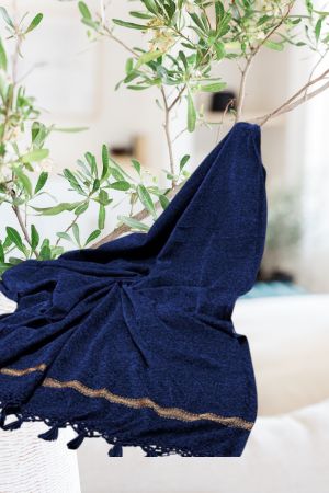 This is a stately and luxurious men's shawl, rendered in a rich, sophisticated shade of Navy Blue.